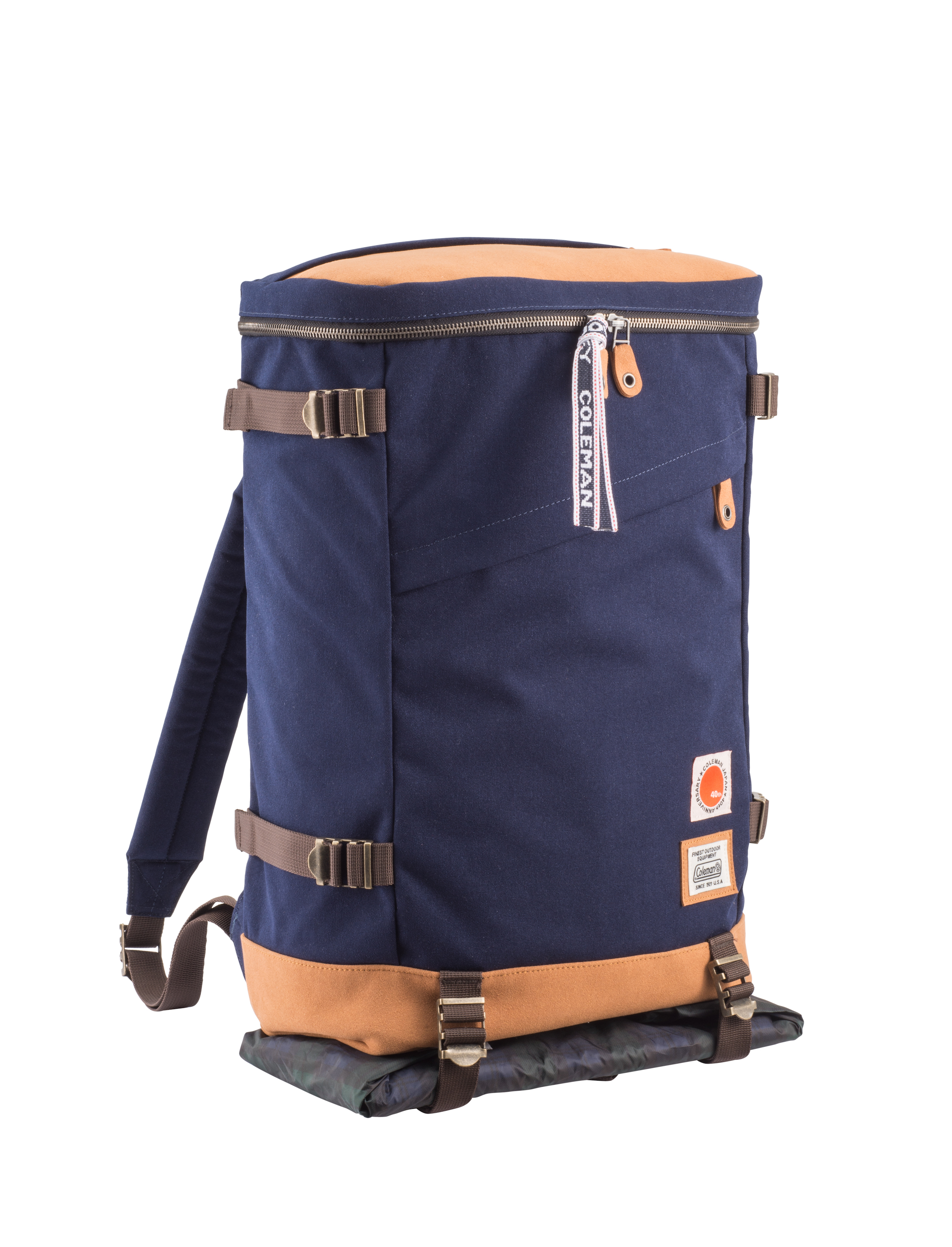 1960年代のアメリカンビンテージバッグを現代風にアレンジした、JOURNEY(ジャーニー)シリーズのスクエアバックパックに 40 周年ロゴのタグを入れて。