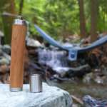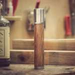 W32×H190mm、内容量2オンス(約60ml)でポケットにすっぽりと収まるスリムなボディは、持ち運びを重視してデザインされています。アウトドアで映える武骨な雰囲気をまといながらも、木の温もりとステンレスによるスタイリッシュな出で立ちは秋の夜長にしっくり馴染みます。