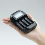 サイズは約100×68×厚さ27mm、重さは約77gと場所を取らないコンパクトサイズ。充電器本体に液晶ディスプレイを備え、充電状況をメーターと%で分かりやすく表示します。