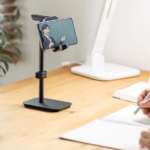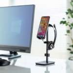 本体の高さが247mmで、ただ単にスマホを置くだけでなく、オンライン会議などの際に目線の高さに近い位置でスマホをカメラ代わりに使用できます。ホルダー部分は、使用状況に合わせて、角度の調整が行えるので便利。目線を上げることで姿勢がよくなり、首や肩への負担がかなり軽くなるのも嬉しいポイントとなりそう。