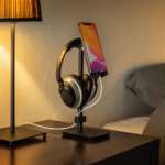 スマホホルダーの裏側に当たる位置がヘッドホン置きになっており、スマホホルダーと同様に滑り止めとなるシリコンゴムが貼付されているので、ズリ落ちの心配はありません。