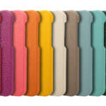 ひとつ目のレザーは、1864年創業のドイツの老舗タンナーであるペリンガー社製の「シュランケンカーフ」。世界トップクラスの発色の良さと上質な柔らかさが特徴の天然皮革で、本ケースでは表地すべてに贅沢に使用しています。カラーリングはBaby Blue、Taupe、Turquoise、White、Purple、Green、Pink、Orange、Navy、Black、Yellow、Red全12色です。