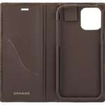 手帳型ケース「GRAMAS German Shrunken-calf Genuine Leather Book Case」はiPhone 12シリーズの薄さを活かすため、表地の革を極限まですいて約15mmの薄さを実現。表は、一枚革でつなぎ目がなく、本革独特の美しさと風合いを楽しめます。
