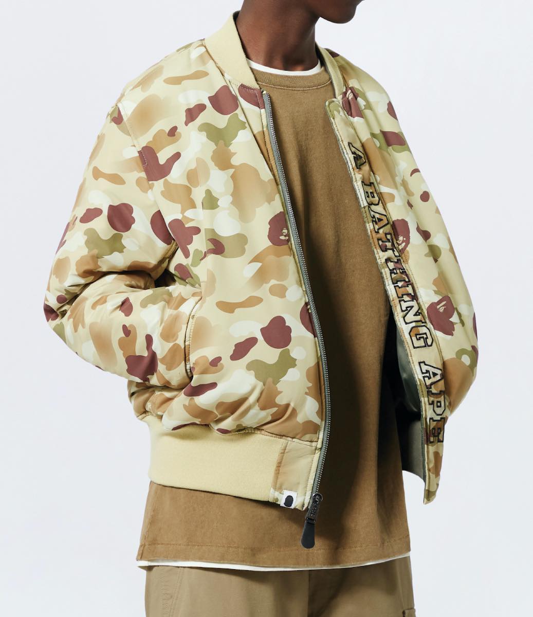 人気ストリートブランドのA BATHING APE(ア ベイシング エイプ)と、ミリタリーファッションでお馴染みのALPHA INDUSTRIES(アルファ インダストリーズ)。親和性の高い両ブランドによるコラボの、2020年秋冬コレクションが登場しました。