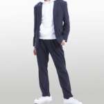 しなやかでありながらスーツらしいハリのある生地で、防シワ性にも優れていて、バッグに入れて持ち歩いてもシワが気になりません。