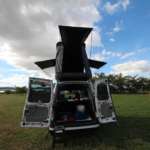 ◆ポップアップテントを連結させてマイカーをキャンピングカー風に!