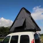 ルーフテントは、メーカーやタイプによっては、最初にトップシェルを開く際に力が必要なタイプもありますが、この「シェルーフ」ではロックを外せば自動的に開くガススプリング式なので、体力に自身がない人でもラクラク設営。