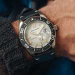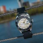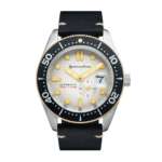 そしてダイヤル上には、3時位置に日付表示窓を、その隣にスモールセコンドを搭載。針やインデックスには、暗闇でも力強く発光するスイス製のスーパーミノルバを塗布し、高い視認性を確保しています。