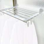 真空式による強力吸着が可能な吸盤を搭載した「折りたたみ式吸盤物干しラック」(3980円)。小さな凹凸でも使える真空式の強力な吸盤がさまざまな材質の壁に使えるので、洗面所や脱衣所などの限られたスペースも、洗濯物を干せる空間に早変わりします。