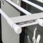 ラックは、洗濯物が乾きやすい6cmの間隔が取られており、洗濯クリップも8個付属。シャツ類など掛けておけるハンガー用のフックも搭載されているなど、小さなスペースに便利な機能が満載です。