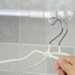 「折りたたみ式吸盤物干しラック」は、洗濯物を干すときにしか使えないの?と思っている人。例えば、洗面所や脱衣所でタオルかけとして使用したり、上にはちょっとした荷物を置いたり、洗濯クリップには手洗いしたマスクを干しておく…なんて使い方もできます。