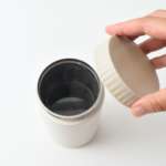 カップ部分は、真空二重構造になっており、コーヒーが冷めにくく、長時間熱いまま楽しめます。またキャップが付属しているので、持ち運びにも便利です。