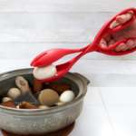 また、「スタンドトング」と同時発売で、ハサミ型のトング「サービストング」(770円)も登場します。先割れタイプのフォークとスプーンが組み合わさったトングで、玉子や餅などの丸いものや、滑りやすいものをしっかり掴めるアイテムです。