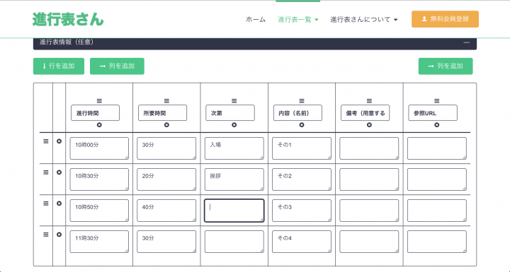 エクセルをカスタマイズして作るのはちょっと手間、もっと手軽で簡単に進行表を作れるテンプレートがあれば……。そんな声を受け、4月5日を「進行の日」とかけて、カンタン作成ツール「進行表さん」のベータ版がリリースされました。