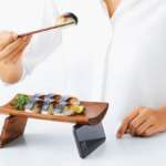 その一環として、「スマホよりも食事と向き合う」ことを念頭に開発されたのが、この「バランス皿」。片方の足しか付いていないので、もう片方にスマホを差し込むことで初めてバランスが取れて使えるようになるお皿です。