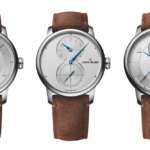 「LE34237AA01BVA31」(予定価格18万円/税別)には、自動巻きスモール・セコンドを、「LE85237AA21BVA31」(予定価格31万円/税別)には時・分・秒の3針が独立して配置される自動巻きレギュレーターを、「LE74239AA01BVA31」(予定価格43万5000円/税別)にはひとつのプッシュボタンでクロノグラフの操作を行える自動巻きモノプッシャー・クロノグラフを搭載。これらのムーブメントの動きは、シースルーの裏蓋から眺められます。