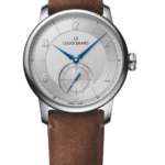 アクセントとなっているブルーの針とリューズは、ルイ・エラールが工房を構えるスイスのジュウ渓谷に自生するモミの木をイメージしてデザインされています。