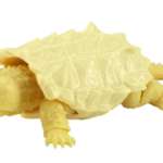 実際のワニガメと同様に、頭や脚が甲羅の中に収まりきらない姿も見れます。成長すると全長120cm、体重も100kgを超えますが、今回のガシャポンモデルでは手のひらに乗るかわいいサイズ。カラーは一般的な色となる黒、アメリカ南東部に生息する色彩変異体のゴールデン、色素が少ないことで全身が白い個体となったリューシスティックの3種類で展開されます。