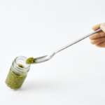 口が小さく、柄が長い(W20×D18×H225mm/約45g)ので、深めの瓶や最近増えているパウチ状の調味料もサッと簡単にすくえます。手に馴染む、ほどよい重量感が使いやすさのポイント。