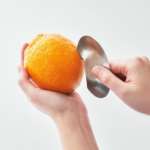 必要な動作はたったこれだけ。ステンレスのアールが手の平にしっかりフィットする形状(W47×D10×H88mm/約30g)で、アボカドはもちろん、柑橘類の皮を剥く際にも便利に使えます。