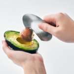まずは、小さな刃でアボカドの皮がするりと剥ける「Muku avocado cutter」(1200円/税別)。これひとつで、皮に切れ込みを入れ、種を除き、スプーン部分で実を外せる便利なアイテムです。