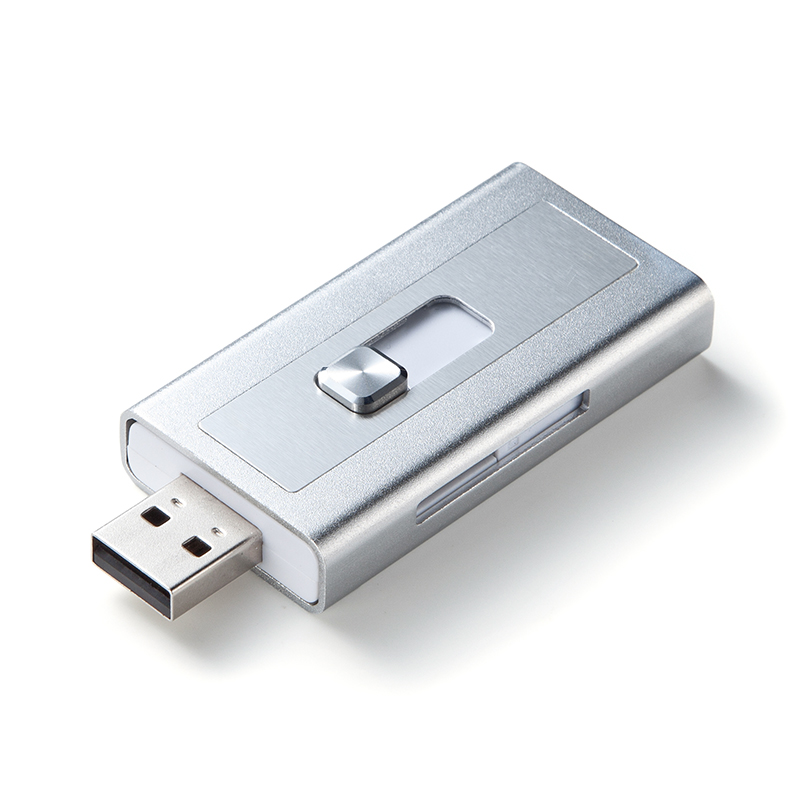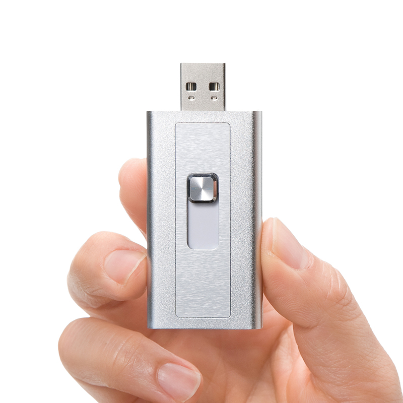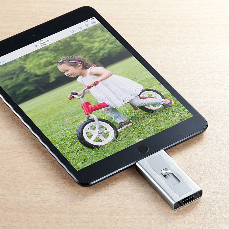 各種データのバックアップや閲覧、ネット環境がない場所でのデバイス間でのデータ共有などにも便利。コンパクトで持ち歩きやすいコネクタ一体型で、ふたつのコネクタはスライドで切り替えるキャップレスタイプ。もちろんMFi認証取得済みだ。価格は5980円。