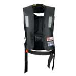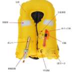 防水・軽量・大容量にこだわったバックパックと一体型になった救命胴衣は、大人用は70kgから150kgまで、子供用は40kgの小学生を想定しています。手動膨張式と自動膨張式が選択でき、自動だと5秒程度で膨らむようになっています。