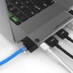 「TUNEWEAR ALMIGHTY DOCK TB4」は、MacBook ProやMacBook Airに搭載されているThunderboltポートをふたつ使って、さまざまな周辺機器を使えるようにできるドッキングハブ。約127×32cmのスリムなボディに、HDMIを2ポート、USB Type-C、USB Type-A、有線LAN、さらにSDカードスロットとmicroSDカードスロットと、合計7つのポートを搭載しています。