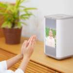 人感センサーと音声認識機能により、「コハコ」の前で名前を呼ぶと正面の液晶ディスプレイに故人の遺影が現れ、「コハコ」の前から離れると自動的にオフになります。遺影写真は専用アプリで好きなだけ設定でき、Wi-Fiで本体と同期されています。