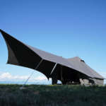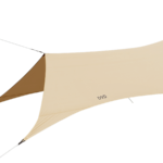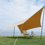 テントのサイズや高さに合わせてピンと張れば、キリッと引き締まったシルエットがサイト全体の印象を凛としたものに。一方、前方部分に高めのポールを組み合わせれば開放的な雰囲気も楽しめるし、季節や天候、地形に合わせたアレンジを試すのも面白そう。