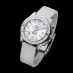 全体をホワイトで統一しつつ、ラチェット式逆回転防止ベゼルのシルバーや、針先端のレッドがアクセントとなりシンプルすぎない洗練されたデザインに。本格ダイバーズでありながら、カジュアルシーンにも合わせやすい1本となっています。