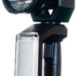 一番の特徴は、上部のスポットライトが照射される1500ルーメンの強力な光。20m先でも平均約250ルクス(一般的な街灯下で約100ルクス)の明るさを保ってくれます。
