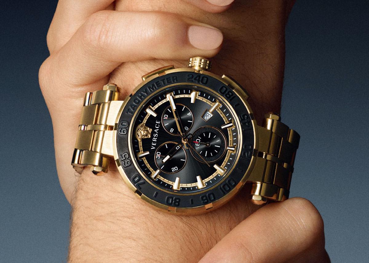 ミラノのラグジュアリーブランド、ヴェルサーチェ(VERSACE)より「グレカ クロノ ウォッチ」(11万1000円~/税別)が登場しました。スポーティーな3つ目のクロノグラフでありながら高級感の漂う、今っぽい デザインが印象的ですが、さらに、暗闇で文字盤全面が明るいブルーに光るインディグロ機能も搭載し、昼も夜も大きな存在感を放ちます。