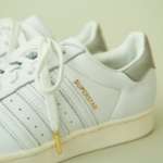 アディダスのスーパースターは、ブランドを代表する定番の名作シューズです。補強のためにサイドに配された3本のストライプのバンドは、ひと目でアディダスとわかるアイコン的存在。