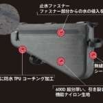 バッグ全体は、シームレスな無縫製技術が駆使されており、ファスナー部分は止水ファスナーとなっているため、バッグ内の小物が濡れしてしまう心配はありません。