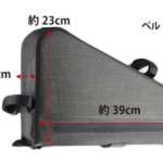 「高防水トライアングルバッグ(B13)」は自転車のフレームの空いたスペースに収納しやすい三角形の形状で、サイズは約6×39×23cmとコンパクト。しかしながら、容量は約8リットルと大きく、スマートフォンや空気入れ、チューブ、ペットボトル、鍵、補給食、軽量のウインドブレーカー、GoProなどのアクションカメラなど、多くの小物を収納できます。