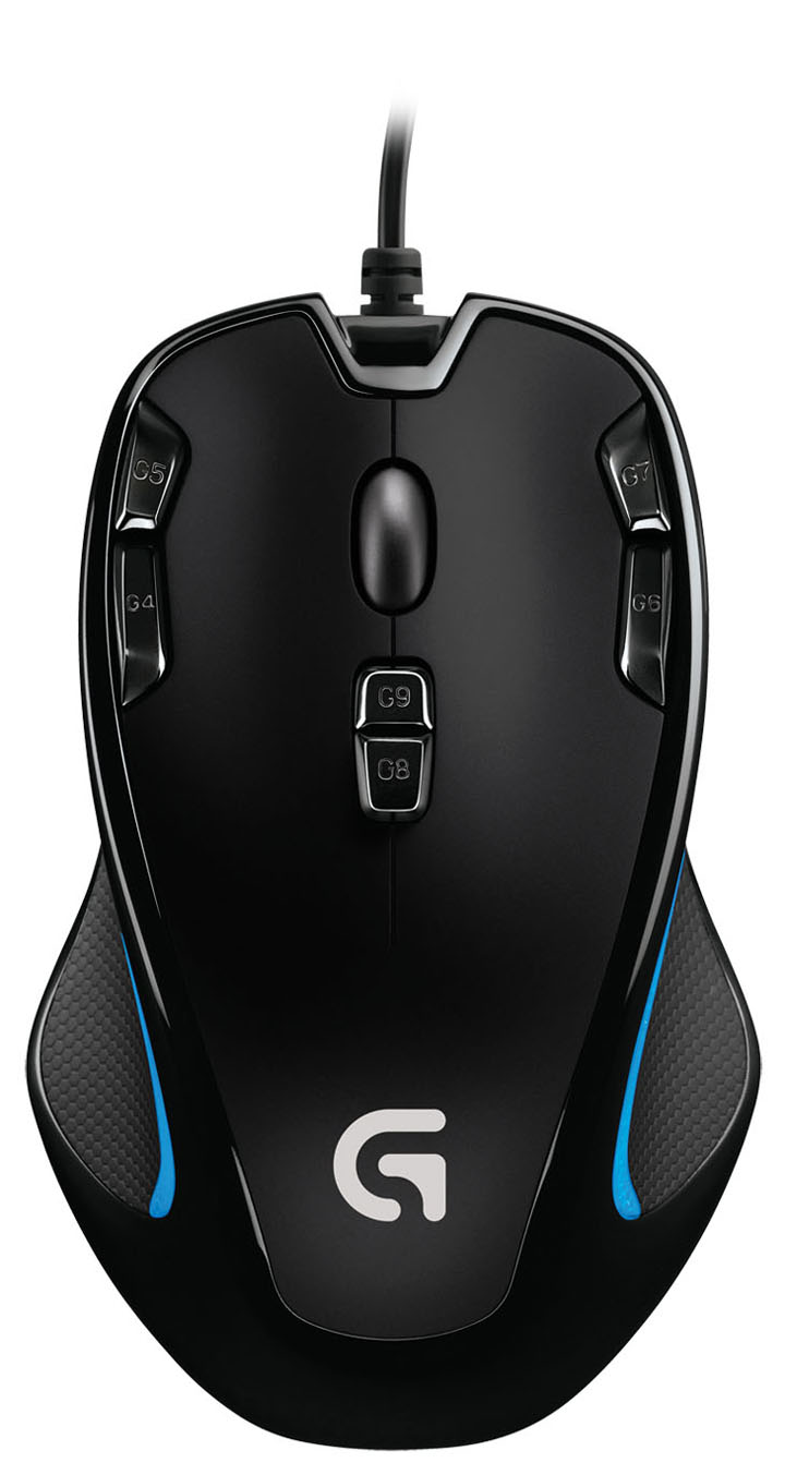 左右のクリックボタン以外にも、左右に各ふたつずつ、スクロールホイールの後ろにもふたつ、計9個のボタンがあり、それぞれが複数キーや組み合わせなどのコマンドをプログラムできる。たとえば[SHIFT]+[9]といった具合だ。また、最大2500dpiの高精度トラッキングを実現するセンサーを備え、狙ったところを確実にポイントしてくれる。