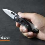 表面には、サンドブラスト加工が施されており、防錆性があり湿気や汗に強い仕様。また、本体は小さいながらもハンドル部は握りやすい曲線型で、親指、中指、親指の付け根の母指球の3点でしっかりと力を入れやすいデザインになっています。