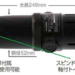 なお、先に取り付けるトイシは別売り。軸径φ3用のコレットが標準付属しており、軸径φ3、φ6の軸付トイシが使用可能となっています。軸の回転をロックできる、スピンドルロック機構が付いているのでトイシの交換も簡単。