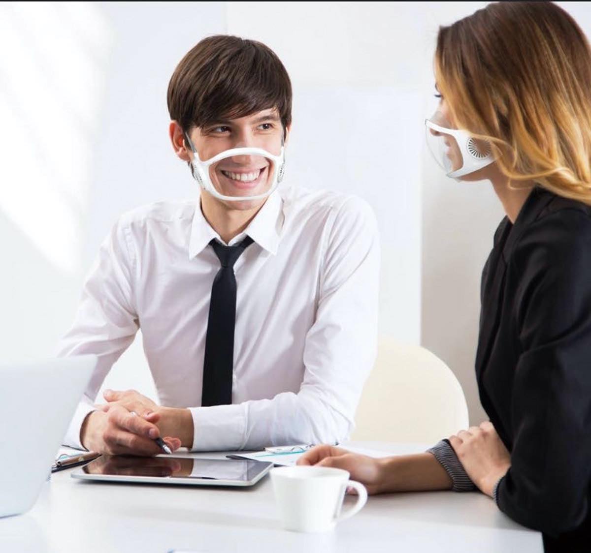 透明で換気用ファンもついてるから口元が見えるのに衛生的! の写真・画像 4/5