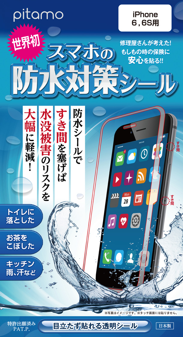 使い方はシンプル。水が浸水しそうな隙間に、薄い透明な防水シートを貼るだけ。この1枚で水没被害を大幅に軽減できるのです。たったこれだけで、トイレに落としてもすぐに拾えば故障しないレベルの防水性能を発揮。