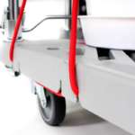 ゴムベルトの両端は、金属フックではなくループ状になっているので、ぐっと伸ばして引っ掛けるだけで簡単に荷物が固定できるという仕組み。側面の切り欠けを固定すれば左右に蛇行しがちな凸凹道でも安心だし、前後にベルトを渡せばちょっとした傾斜のある道でも、積み重ねた荷物が滑り落ちる心配なし。