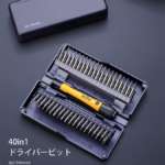 40in1ドライバーの先端ビットは、40種類用意されており、PCやゲーム、カメラなど家庭にありそうなもののほとんどに対応できます。4mmの精密ビットにはS2合金鋼を使用し、硬度は60±2で耐腐性試験8時間をクリア。錆びつかず、欠けない材質を使用しているので、久しぶりに使ってみようと思ってたら錆びてた…、という心配もありません。