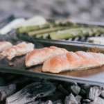 下ごしらえ中にバットとしてプレートに材料を置いたり、焚き火で鉄板焼きや煮込み料理をしたりとさまざまな使い方が可能で、スリット入りのプレートは食材の水切りや魚焼き用としても使えます。素材は304ステンレススチール鋼を採用しており、耐久性にも優れています。