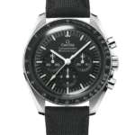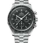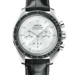 その一方デザイン面では、1969年に宇宙飛行士が月面で着用していた“第4世代ムーンウォッチ”から着想を得た伝統のデザインをあくまでも踏襲。宇宙開発時代への敬意を表した左右非対称のケースやステップダイアルに、ベゼル上には有名な“ドット・オーバー 90”と、“ドット・ダイアゴナル・トゥ 70”が配されるなど、アイコニックなディティールを備えます。