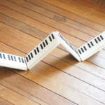 「ORIPIA88」は、グランドピアノと同じ88の鍵盤を持ちながら、パタンパタンと4つ折りにできる画期的な電子ピアノ。幅1318×奥行き126mmで厚さ22mm、重さ1.6Kgの本体には、充電式バッテリーと2Wスピーカーを2基内蔵。