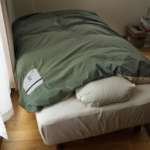 仕様は至ってシンプルで、「フトンキャンパー」の中に掛け布団を入れるだけ。布団を縦方向に畳み、コの字状に配されているファスナーを閉めればあら簡単。あっという間に寝袋の出来上がりです。