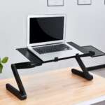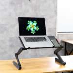 デスクがないソファーやベットの上、デスクや床の上でも自由に高さを調整できるのが「折りたたみノートパソコンテーブル」で、立っても座っても自由に角度や高さを調整できます。角度調整は15度刻みで360度調整が可能となっているので、ベットの上で寝転がったままの作業や、自分の好きな場所に移動しての作業などが自由自在です。