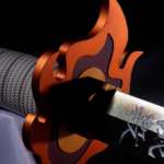 彩色ももちろん細部まで忠実に再現。独特の炎の柄は、上から部分的にパール塗装を重ねることで、イメージ通りの明るい刃を実現しています。特徴的な鍔は、彩色や凹凸の隅々まで公式監修のもとでリアルに再現しています。付属の専用台座に飾って楽しむこともできます。
