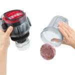 両モデルとも強い吸引力を99%以上持続。さらにカップ内を回っている風の流れを変化させるトルネードプレス機能で、ゴミを約1/4に圧縮してくれます(VC-CLS1は、約1/3)。ダストカップ内は帯電防止加工が施されているので、ごみ捨て時のホコリの舞い上がりを低減します。ダストカップや回転ブラシは、外して丸ごと水洗い可能なので、お手入れも簡単です。